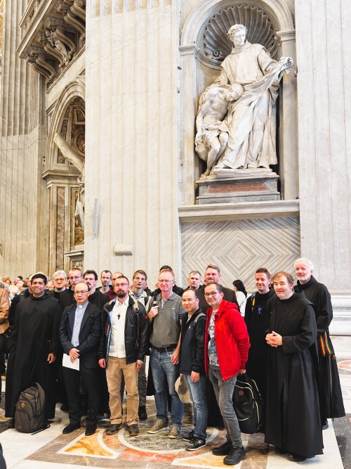 Milosrdní bratia na púti v Bazilike sv. Petra v Ríme pod sochou zakladateľa, sv. Jána z Boha.